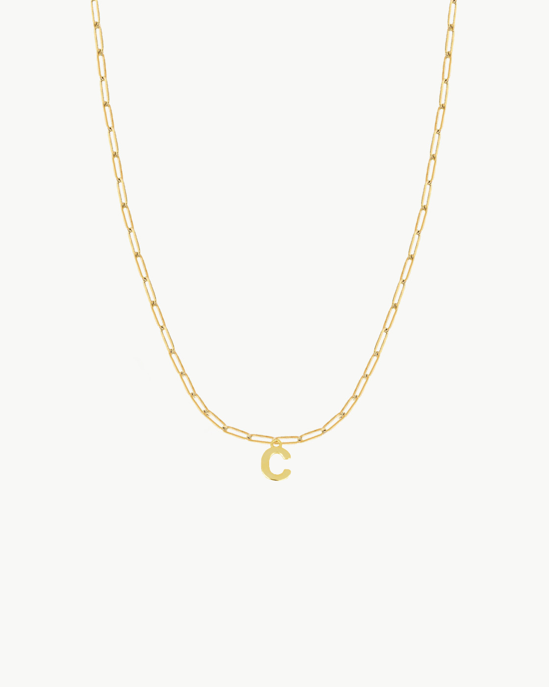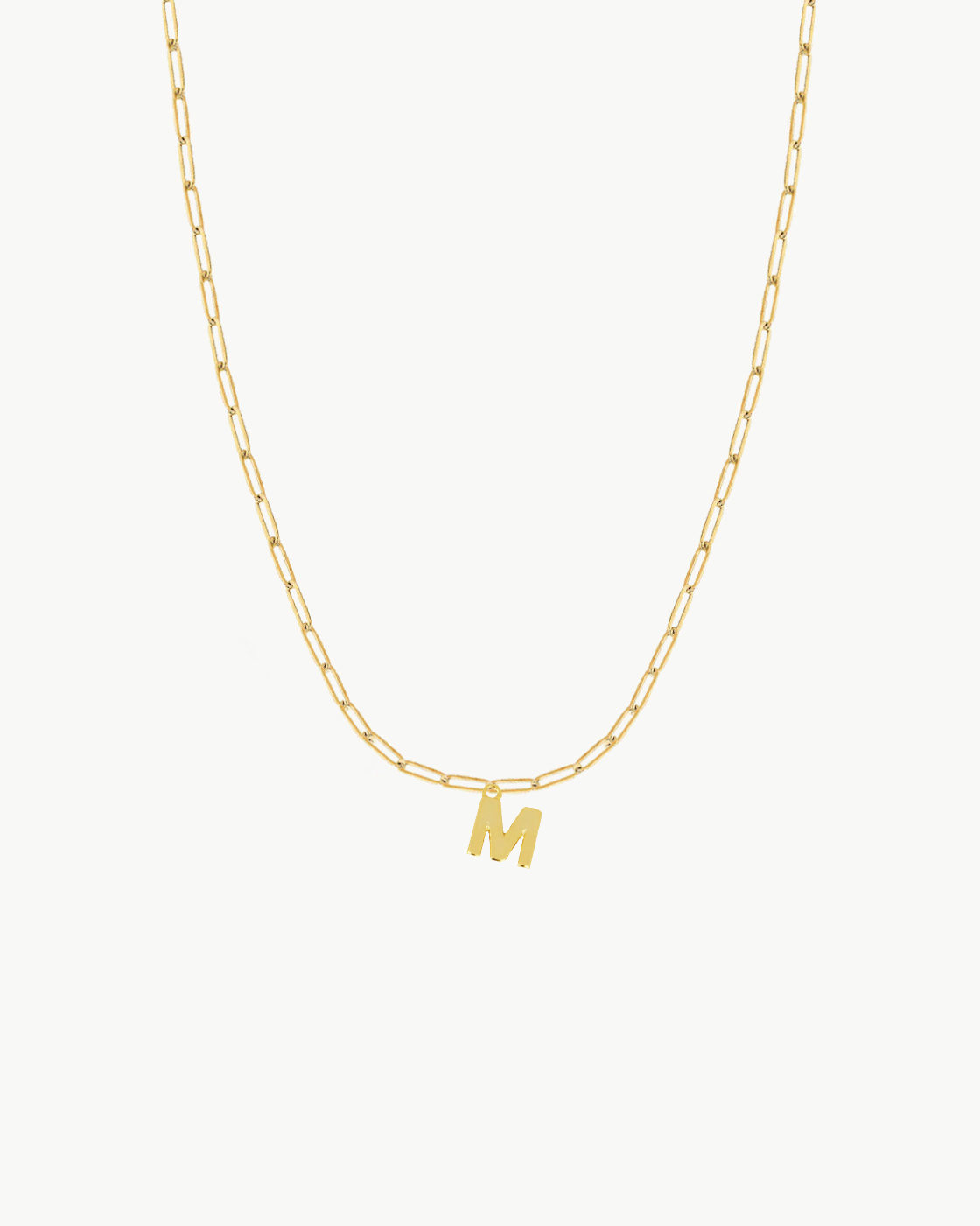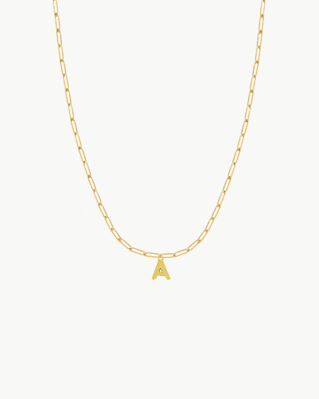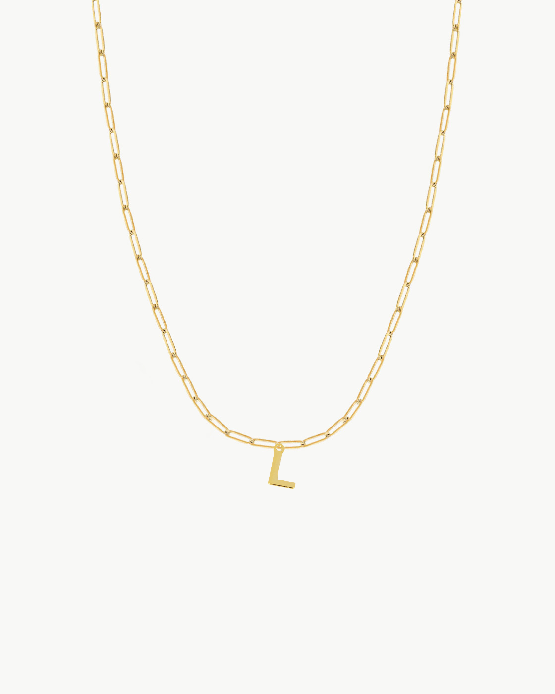 El diseño destaca por su cadena de eslabones finos dorados y un broche circular elegante que aporta un toque sofisticado y moderno. Puedes añadir desde 1 hasta 5 letras, para crear una combinación que te represente.