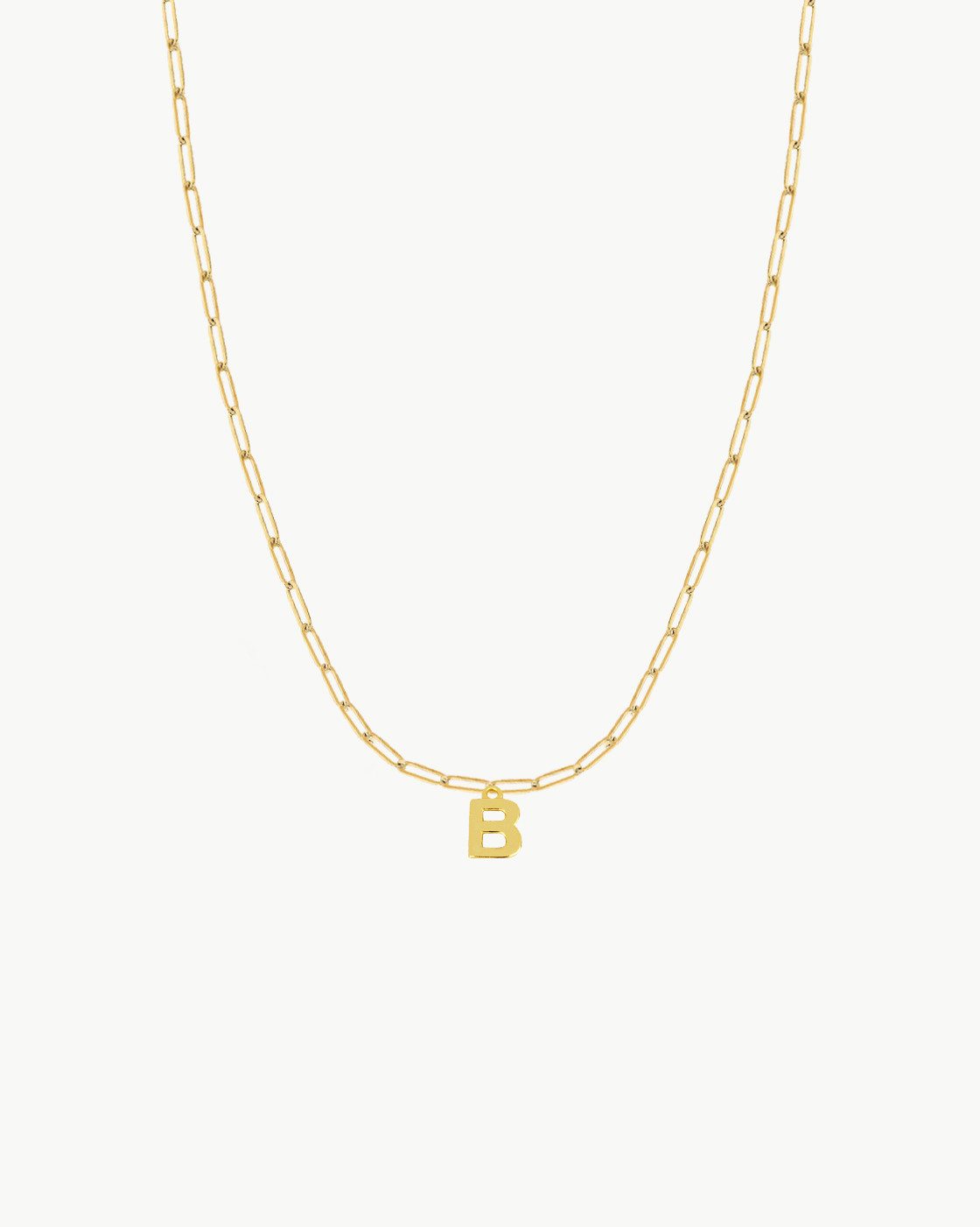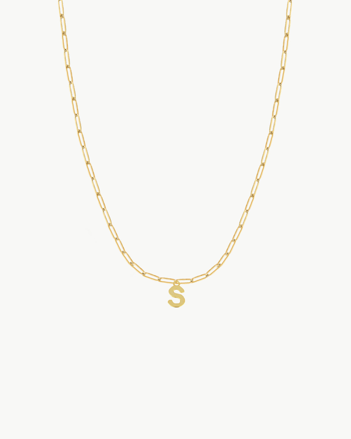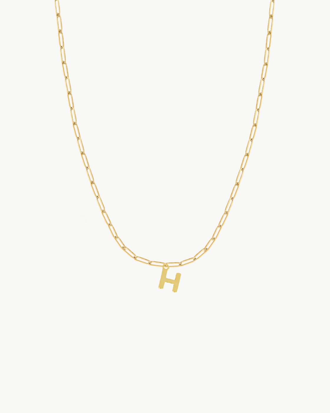 El diseño destaca por su cadena de eslabones finos dorados y un broche circular elegante que aporta un toque sofisticado y moderno. Puedes añadir desde 1 hasta 5 letras, para crear una combinación que te represente.