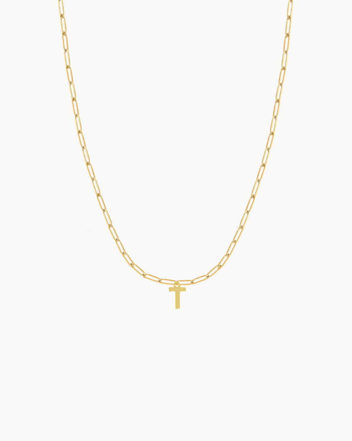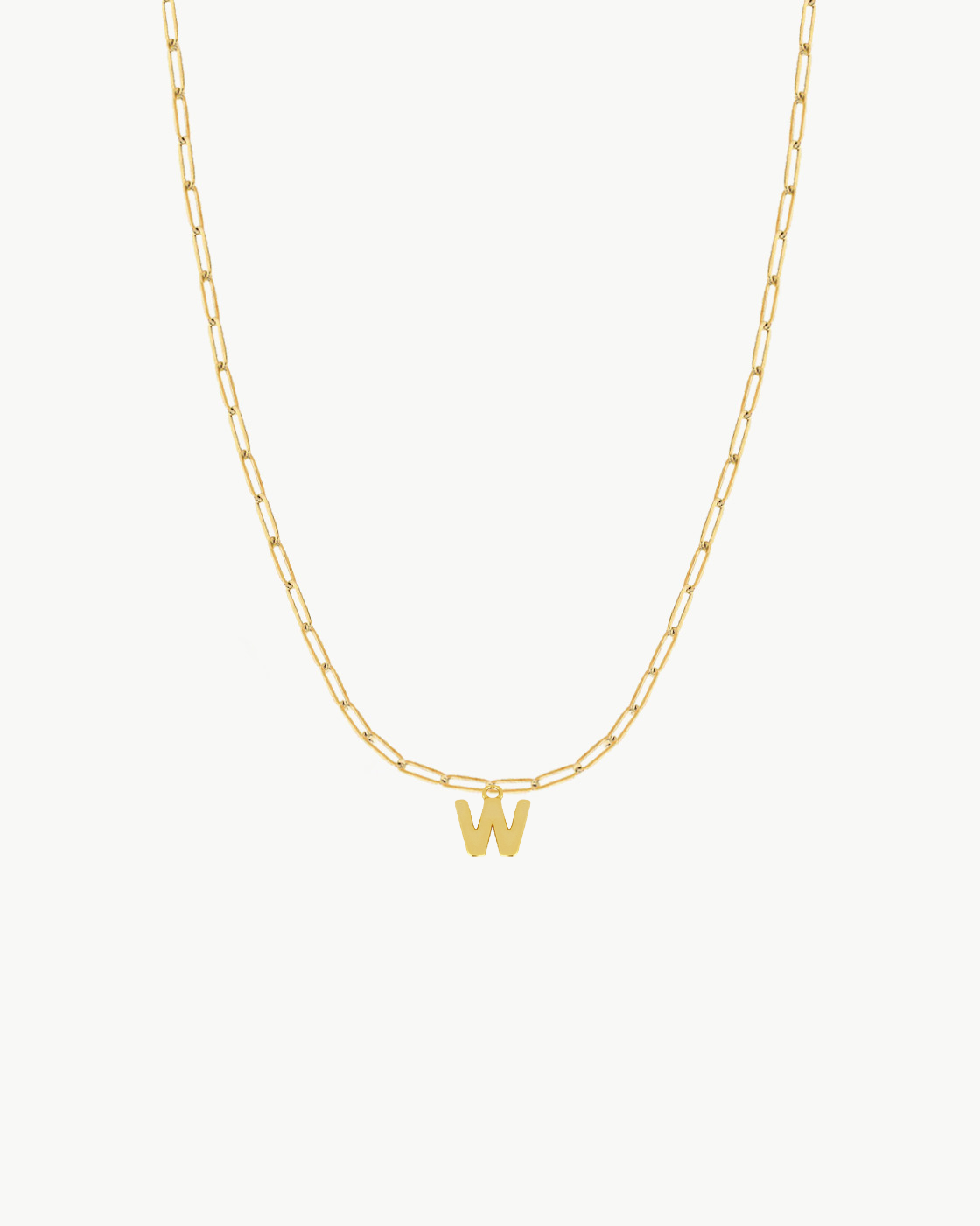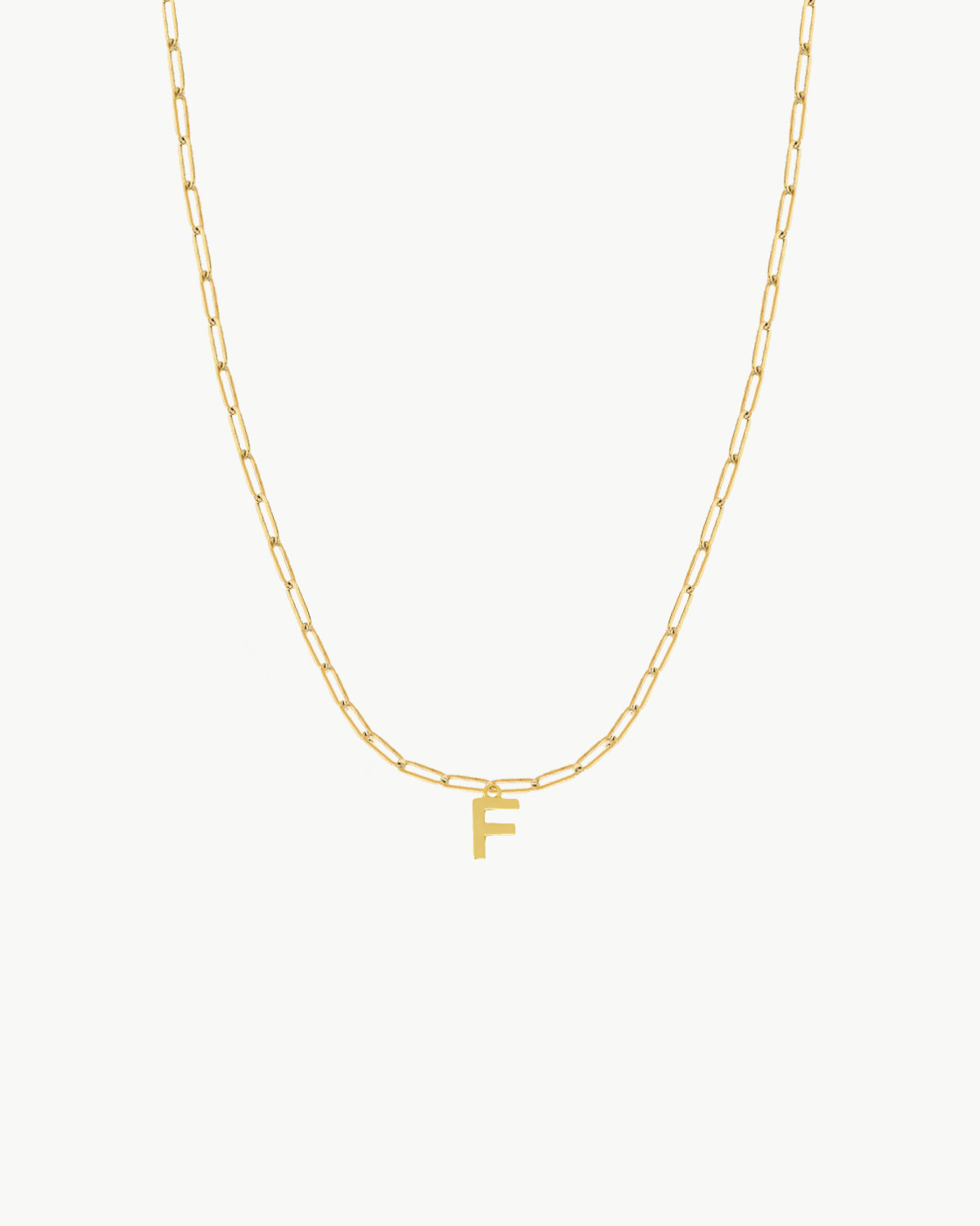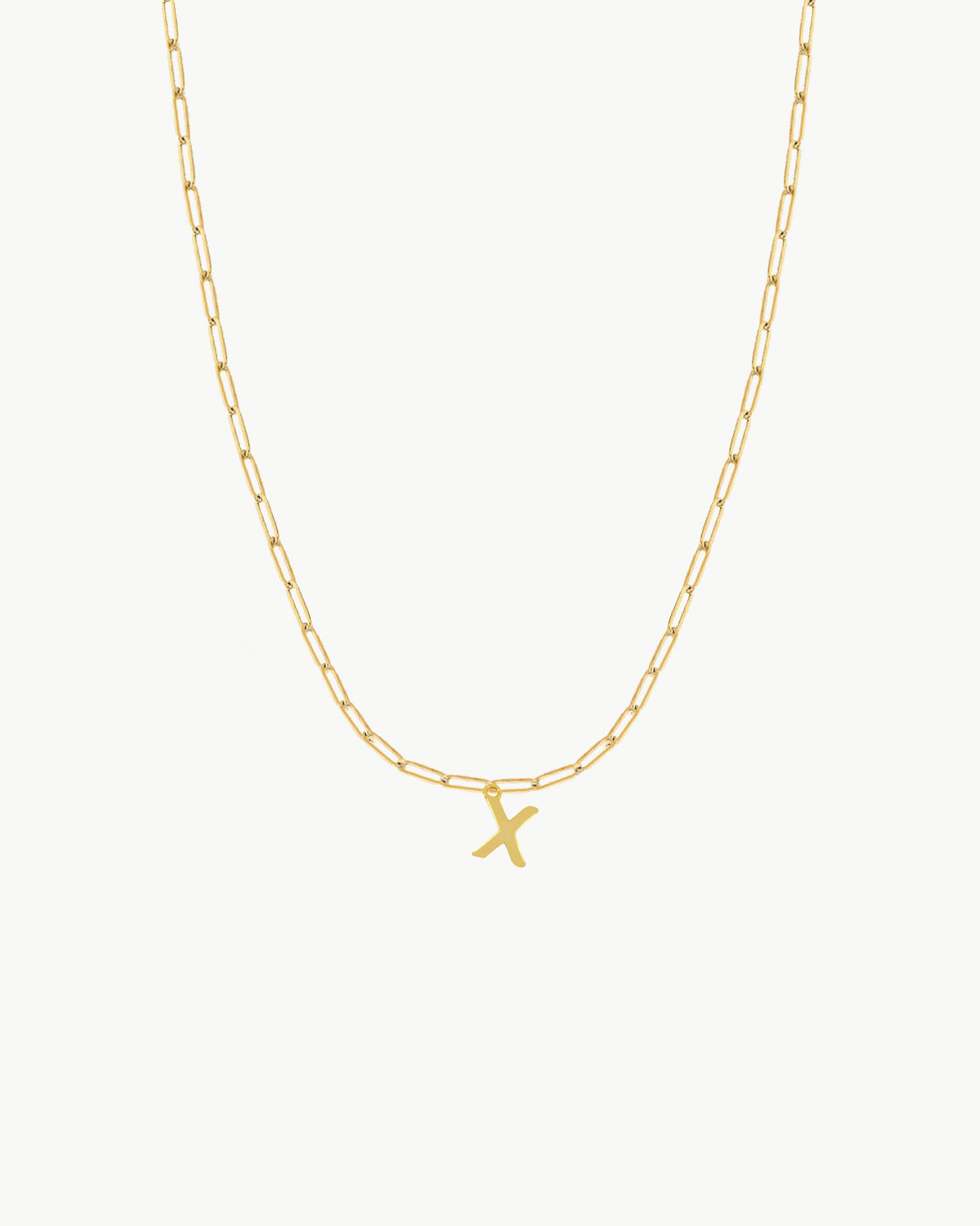 El diseño destaca por su cadena de eslabones finos dorados y un broche circular elegante que aporta un toque sofisticado y moderno. Puedes añadir desde 1 hasta 5 letras, para crear una combinación que te represente.