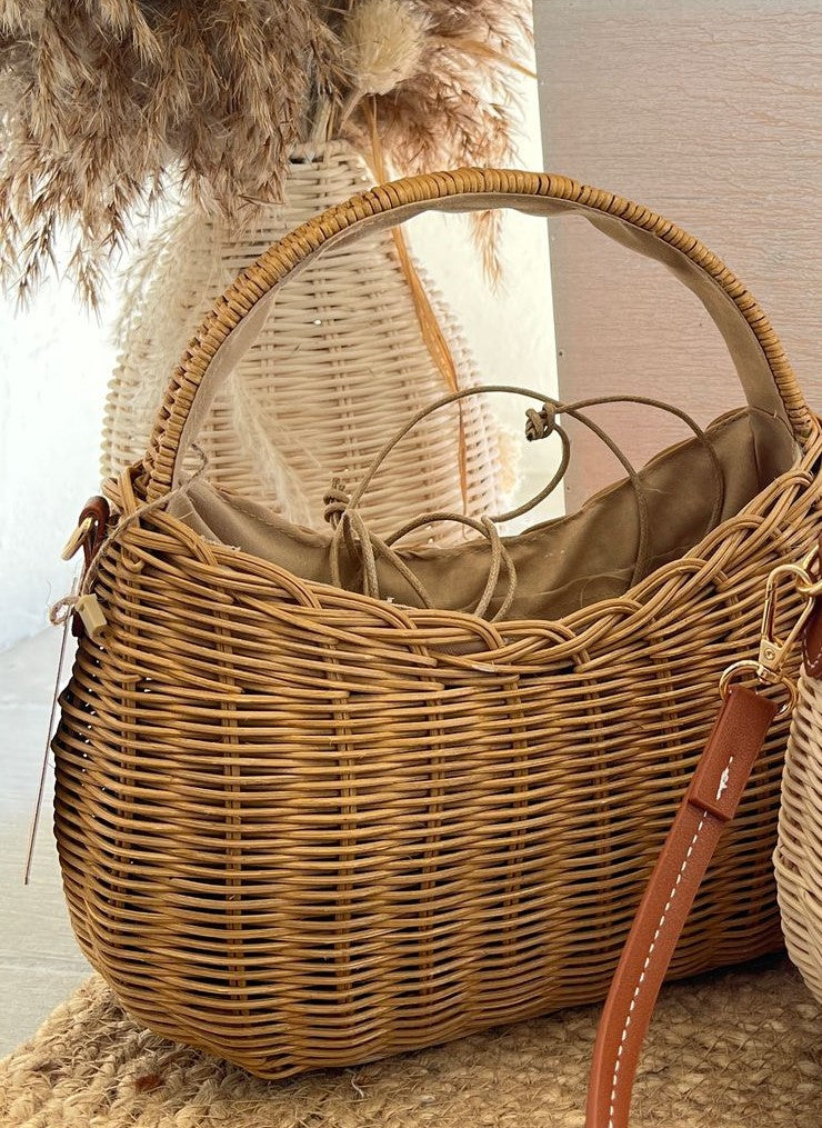 Su mango cómodo y suave permite llevarlo tanto en la mano como al hombro, dándote libertad y un look desenfadado, pero sofisticado. Cada pieza está cuidadosamente elaborada, convirtiendo lo natural en algo precioso.
