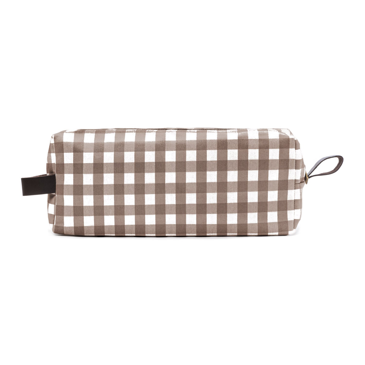 Neceser vichy maxi en marrón cálido, estilo natural y acogedor.