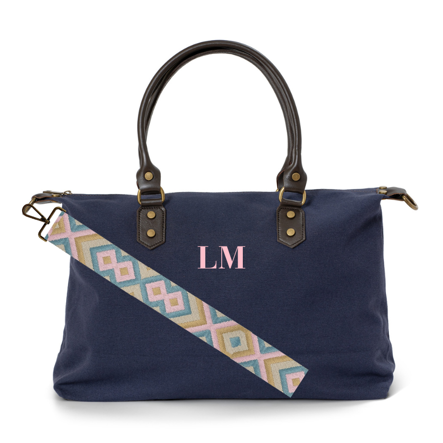 Bolso Leonardo Azul marino Bordado Rosa Palo y bandolera Rosa y azul