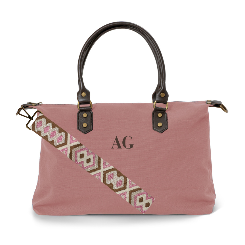 Bolso Leonardo Rosa Bordado Marrón Chocolate y bandolera rosa y marrón