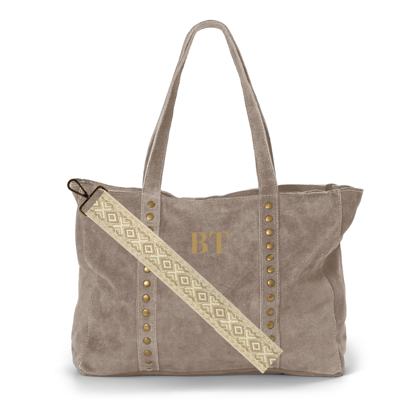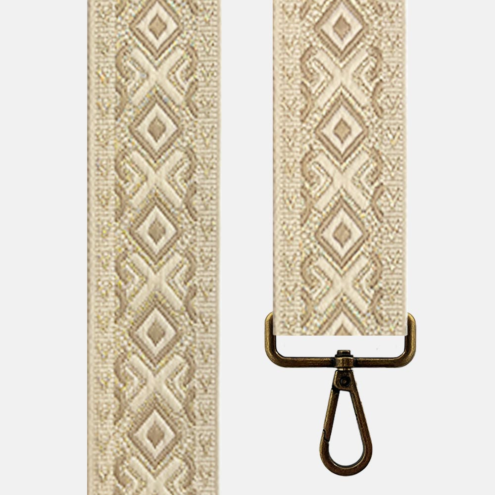 Bolso Manzoni Taupe con Bordado Dorado y Bandolera étnica taupe y dorado