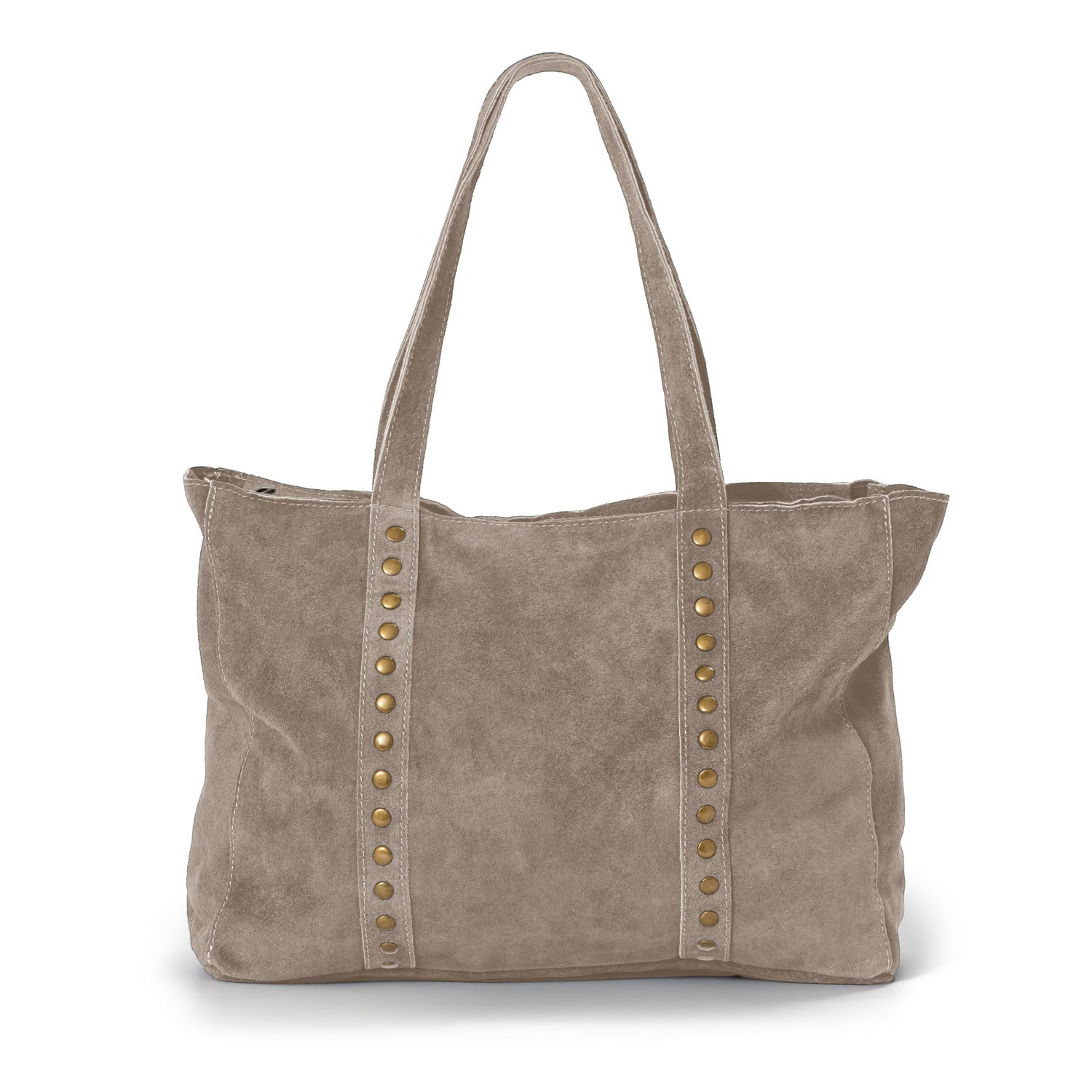Fabricado en ante suave y resistente, con detalles de tachuelas decorativas que marcan la diferencia.