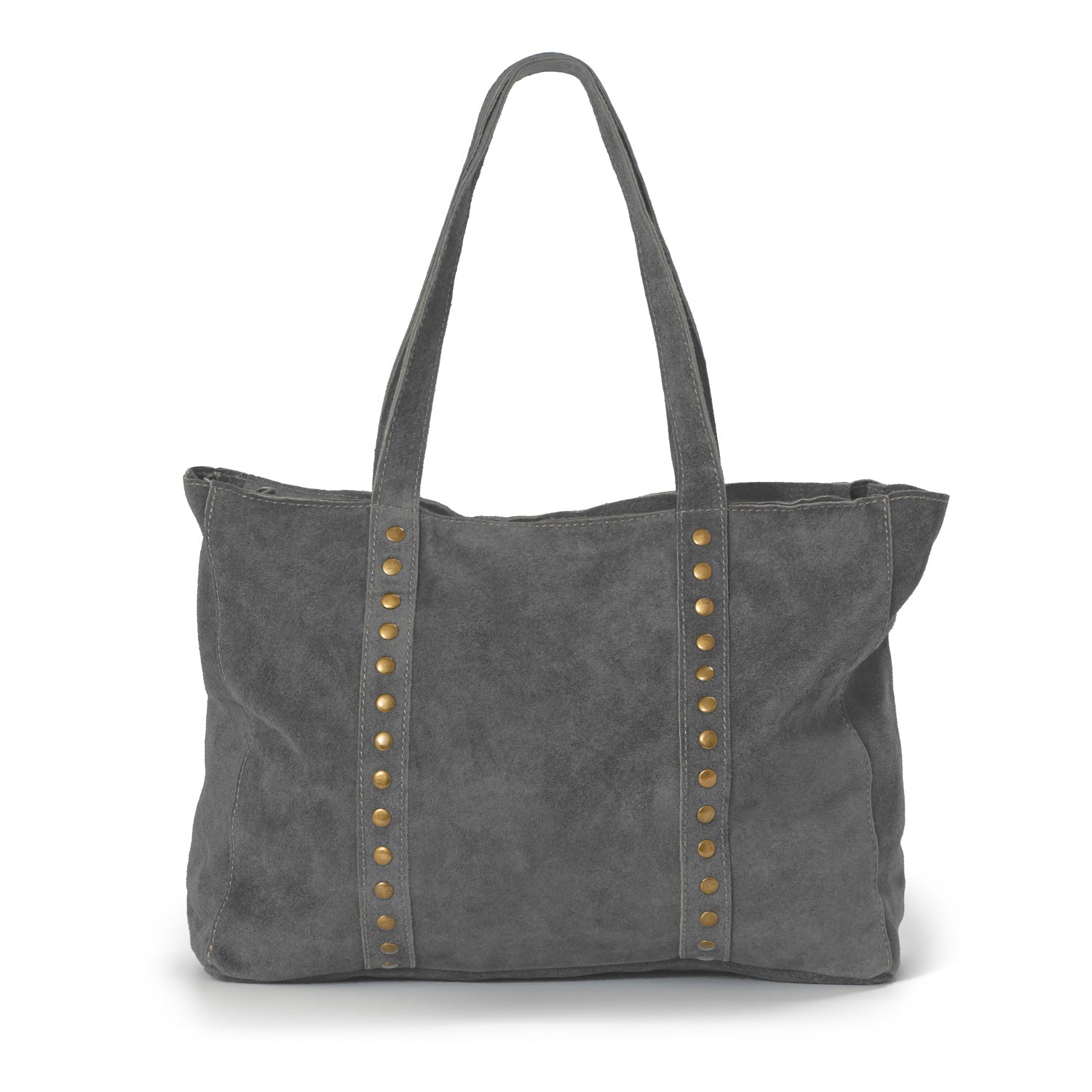 Fabricado en ante suave y resistente, con detalles de tachuelas decorativas que marcan la diferencia.