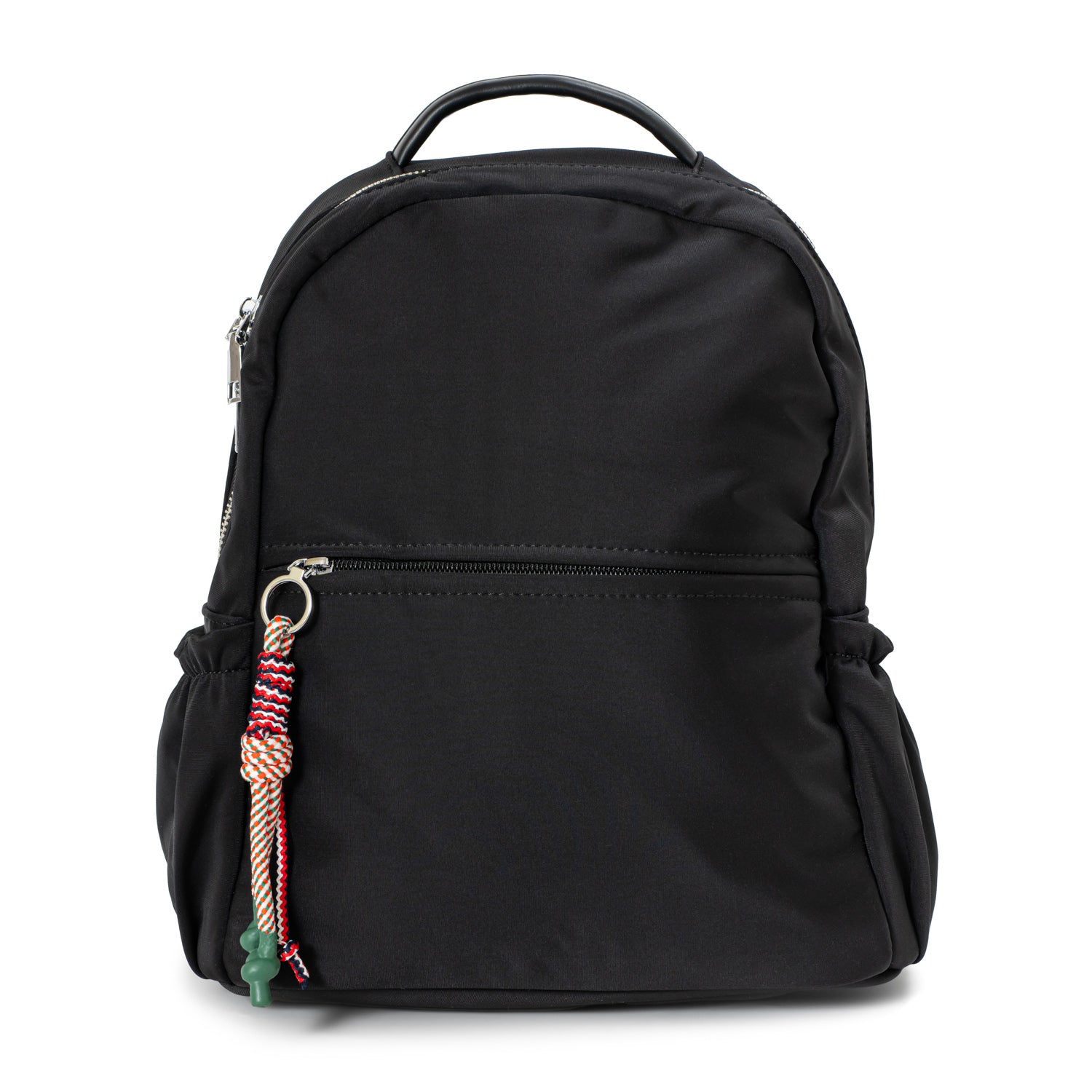 Aus strapazierfähigem Nylon mit silbernen Metallreißverschlüssen.